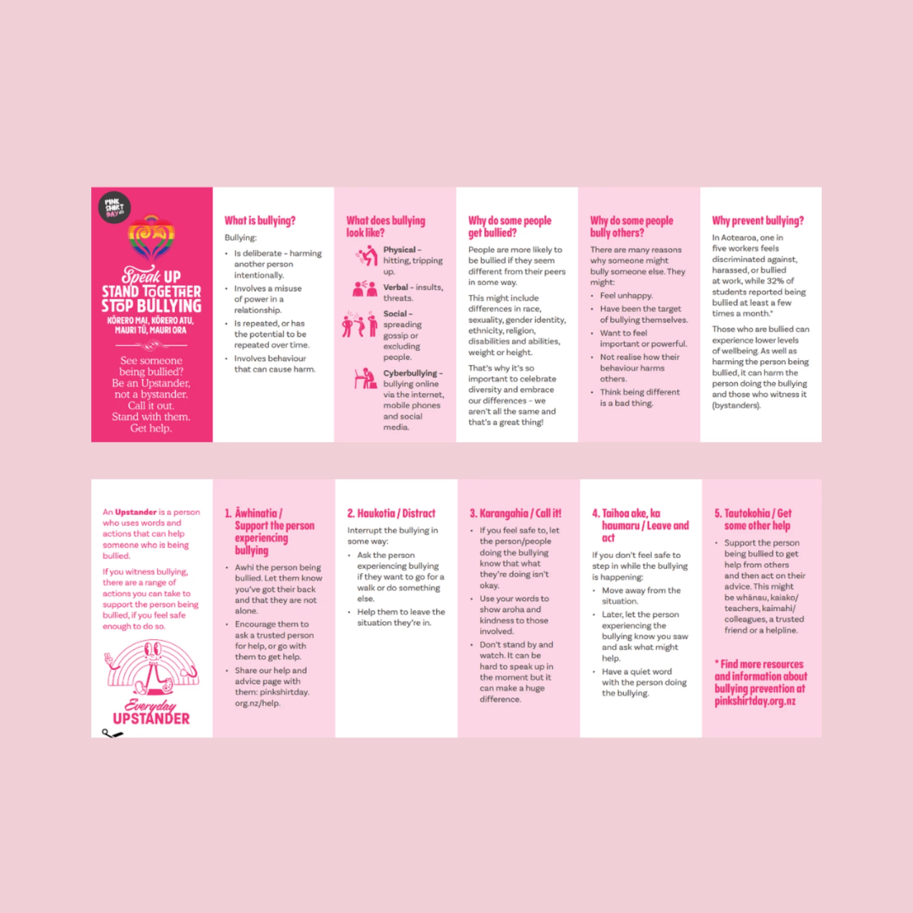 To download this free resource, please enter your details below. We’ll also add you to our Pink Shirt Day newsletter to help you make the most of the kaupapa and learn about our bullying prevention initiatives (you can unsubscribe at any time).
