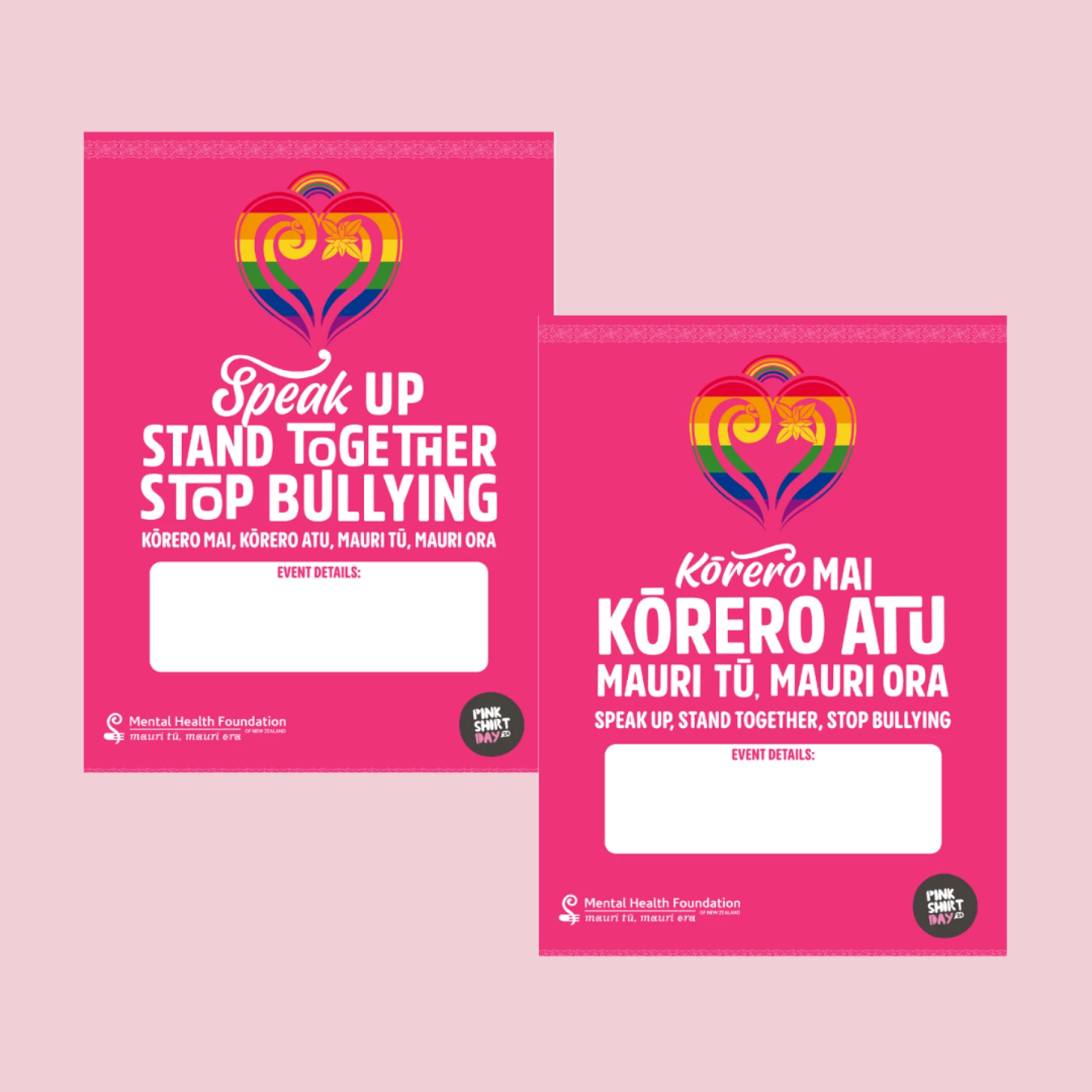 Te Reo Māori and English event posters to help you promote your Pink Shirt Day.