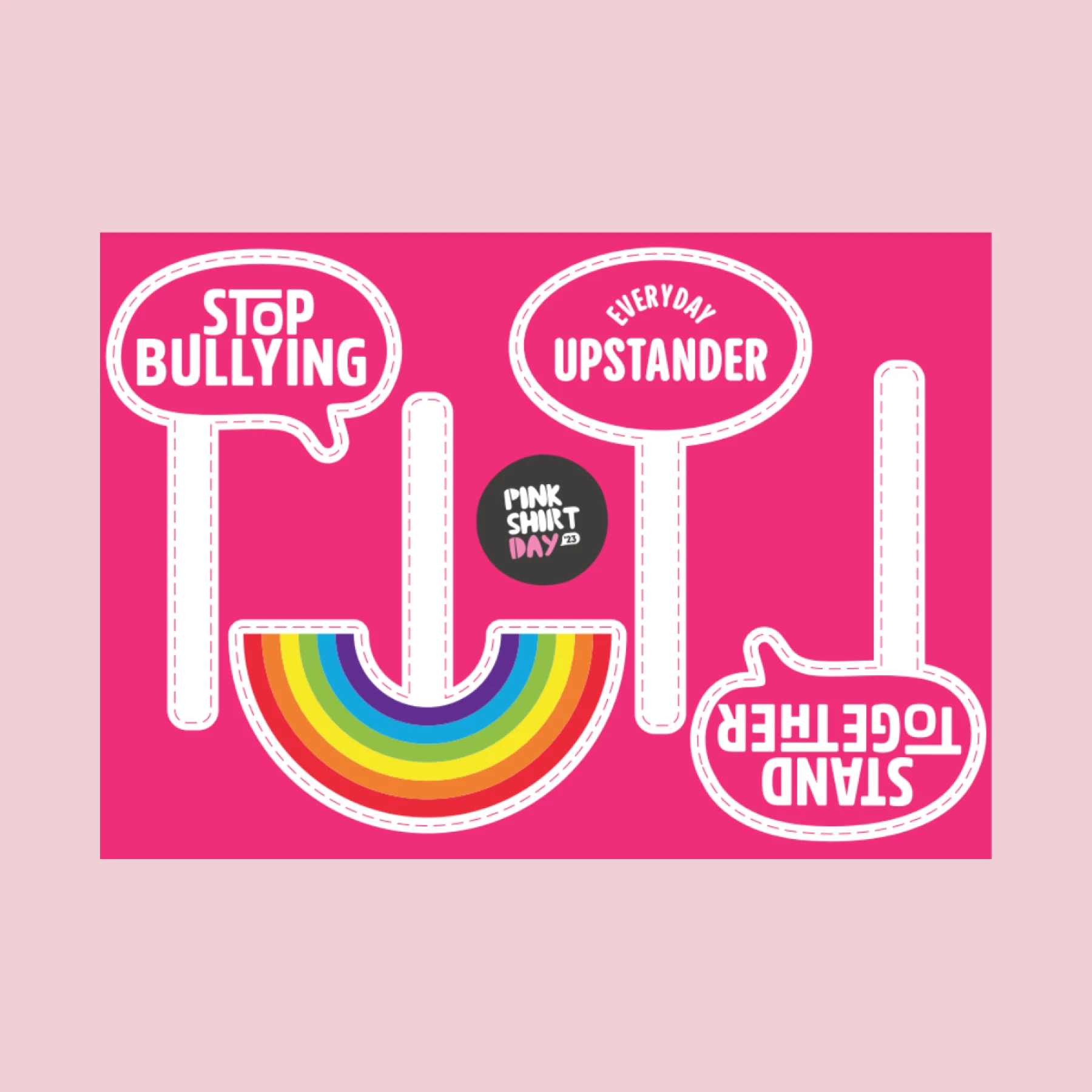 Get creative and have some fun with our Pink Shirt Day photo props.