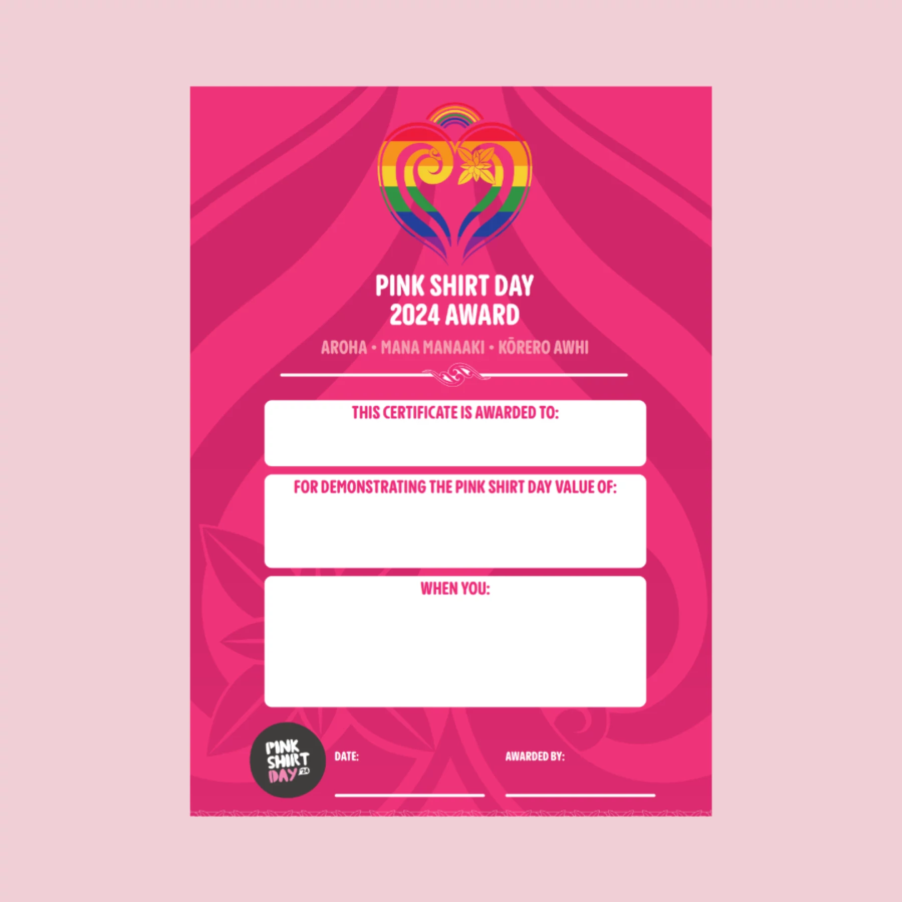 Recognise Pink Shirt Day values with personalised certificates at work.